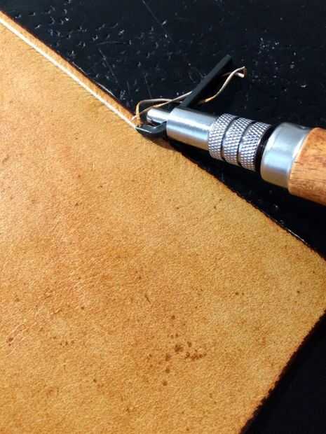 Hay muchos métodos de preparación de cuero para la costura, así que voy a saltar el tutorial y a vincularte al instructivo "Cómo para preparar cuero para la costura" o de George Hurst "mano costura sobre cuero fino"
