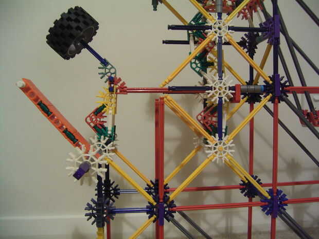 Este elemento actúa como elevación del brazo de un cuarto a otra pista.Paso 1: La base Como de costumbre, la base es fundamental.Paso 2: Siguiente capa Esto va sobre la base. Tenga en cuenta los conectores blanco y los conectores naranja.Paso 3: cont
