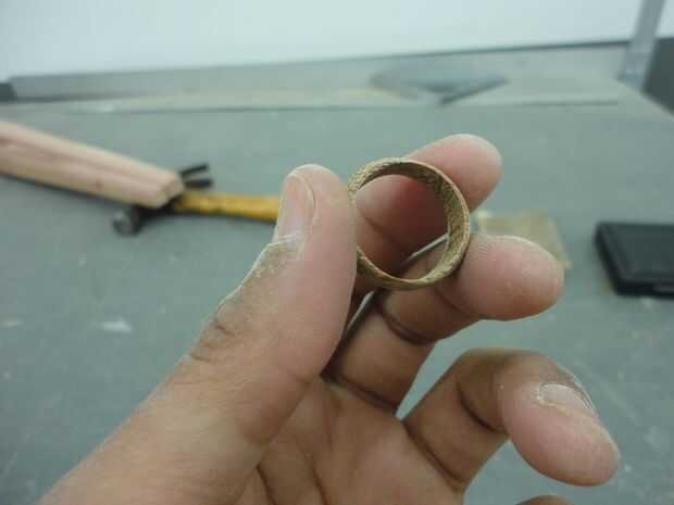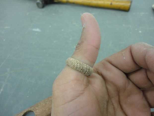 Tómese su tiempo con los granos más finos así y siga buscando en el ring en diferentes ángulos para revelar cualquier imperfecciones o manchas perdidas. Hay un par de opciones disponibles para terminar. Si usted tiene acceso a una prensa del taladro o torno y puede afix el anillo a él firmemente, poniendo una pequeña cantidad de pegamento en el anillo de giro le dará un pulimento agradable y algo de fuerza mayor. Como alternativa, puede utilizar algunos (tal vez 2 o 3) capas de poliéster de secado rápido. Esto parece dar lo mejores polaco y se puede hacer con unos 30 minutos entre capa y capa.