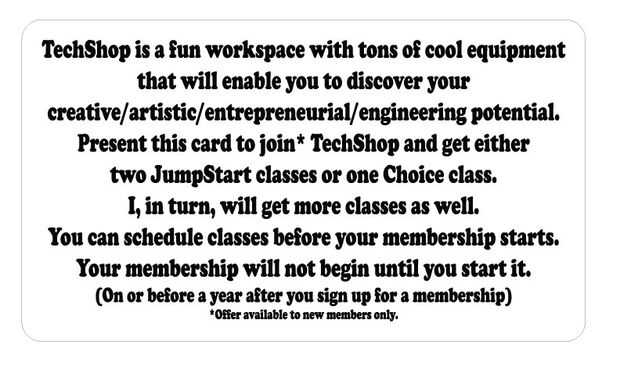 A menudo, cuando en realidad de mano estas tarjetas hacia fuera, te comento que si están en TechShop el mismo día que soy, estoy más que dispuesto a ayudar con los consejos y trucos que yo he recogido durante mi permanencia.
