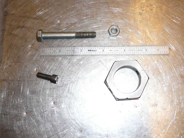 1 tuerca de Steele, 1 5/16-18 perno cerca de 3 pulgadas con tuerca que empareja y 1 1/4-20 perno de 1 pulgada de largo. (Tamaños de la tuerca y el perno pueden variar dependiendo del tamaño de perro de torno necesario)