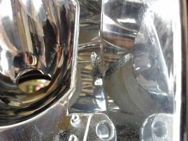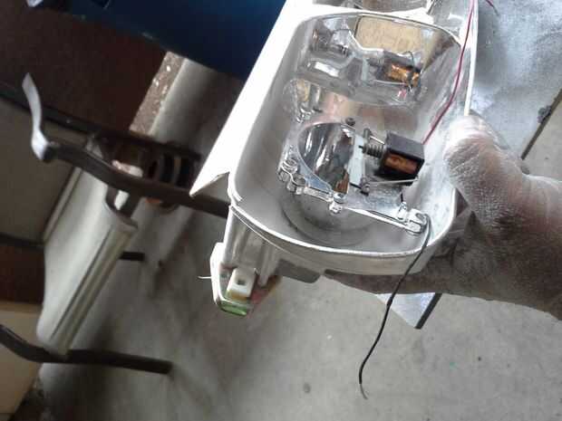 agujero pequeño en la parte inferior de la vivienda aunque el reflector. los cables de solenoide eventualmente va aquí.
