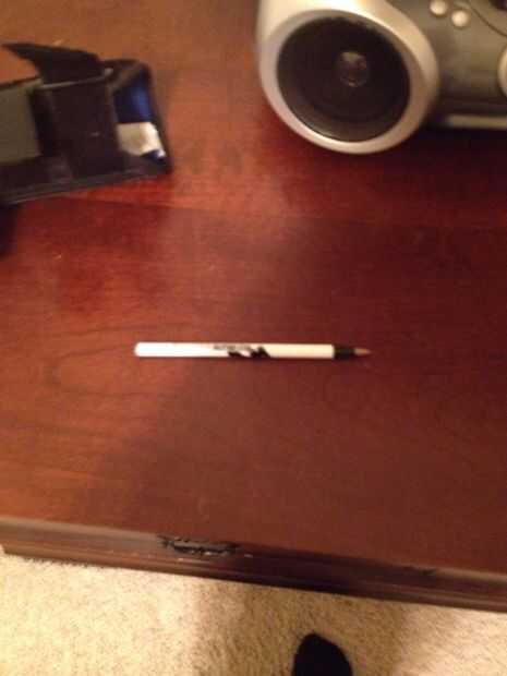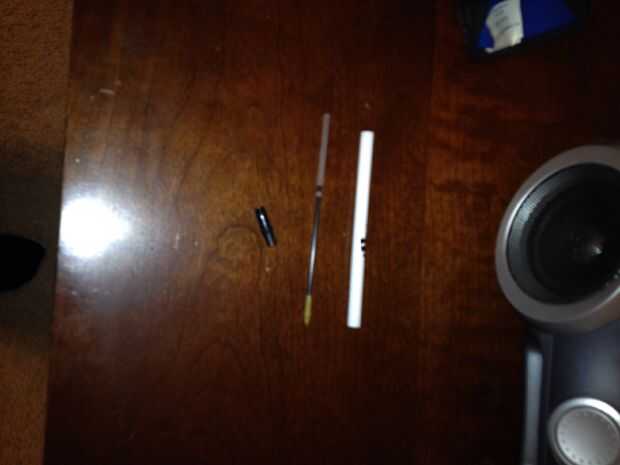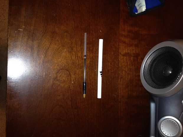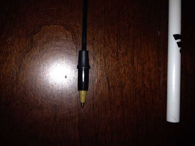Desmontar el lápiz como se muestra. A desmontarlo. Debe haber tres piezas. Luego, poner junto al revés para que la pluma se desliza hacia fuera.