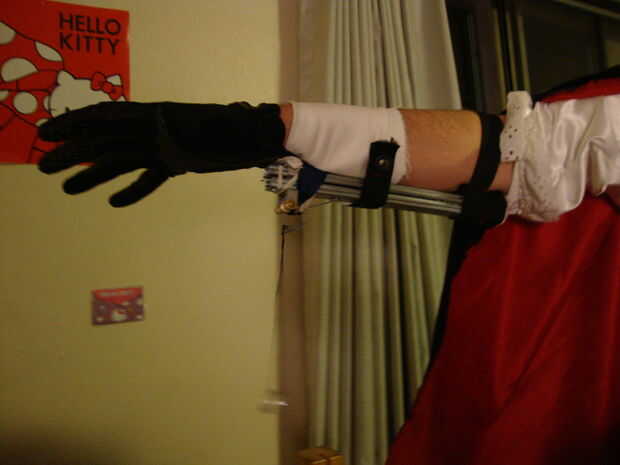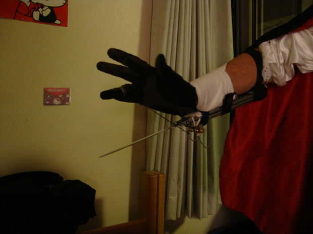 Inspirados en el Assassins creed y http://exoticautomatic.com/, decidí hacer mi propia gravedad accionada xiphoid.  Aunque no parece como que la gravedad es ideal, me permite retraer la cuchilla. Y si realmente quiero, ranuras para montar muelles. Me