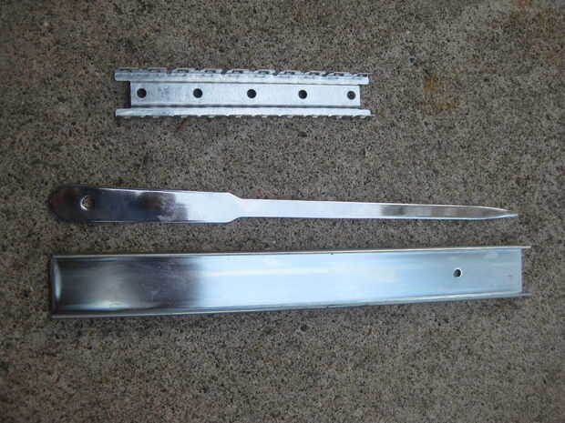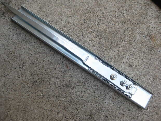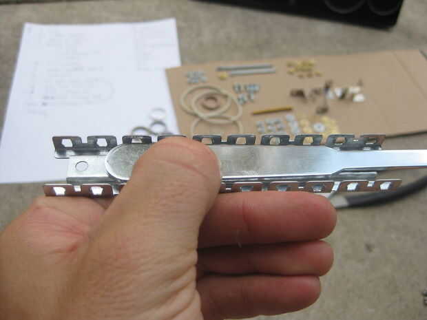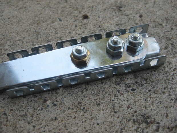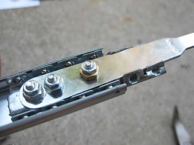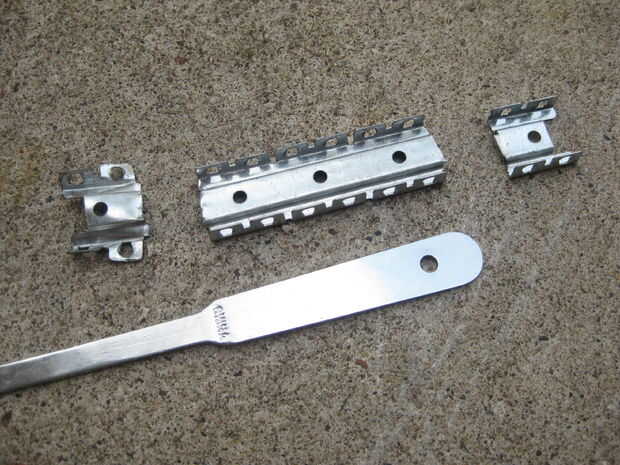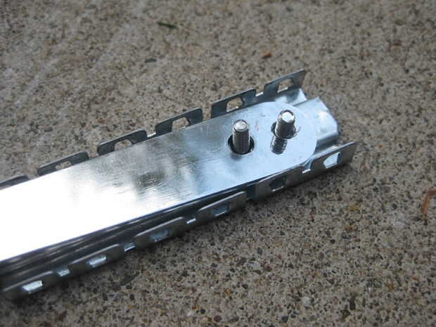 Perfore agujeros a través de la hoja y slidy cosita así que usted puede poner los pernos a través de los dos junto con las tuercas para apretar.