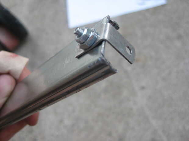Perfore un agujero pequeño (apenas suficientemente amplio como para su perno de tamaño 6) a través del L soporte justo encima de uno de los otros orificios ya en él y cerca de la curva. (cuadro 1)