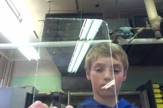 Paso seis corté el pedazo de vidrio hacia fuera que en el el marco y luego cortar un trozo de cartón hacia fuera para evitar que el vidrio del plexi agrietarse.