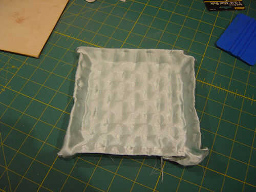 Recortar el satén para un margen incluso - 1/2 más allá de los bordes de la cartulina. Deje el satén en lo que será las esquinas de la caja. Utilizan a la tela pegamento para pegamento de la tela hacia atrás sobre los bordes de la cartulina. Deje que se seque.
