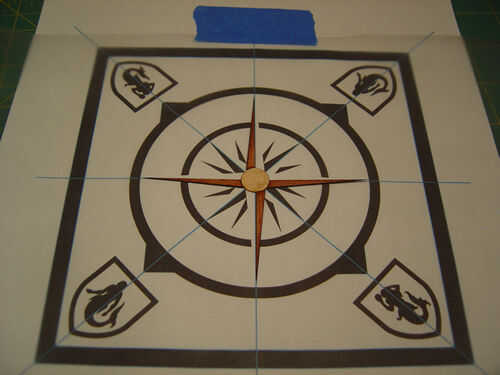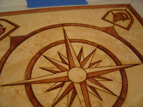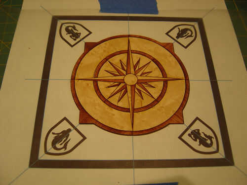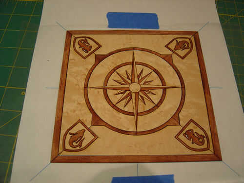 Empezar a colocar las piezas de chapa, lado bueno, en el patrón. Trabajar desde el centro hacia fuera. Si pones ligeramente que le dará un montón de desplazamiento de habitación para conseguir exactamente lo que desea. Empuje que las piezas demasiado juntos si se puede lo evitaron porque expanda un poco temporalmente cuando pegue y esto puede impedir que las piezas acostado. Cuando eres el pedazo de forro sobre el palo y otra vez alrededor de los bordes para mantener la chapa limpia. Montarlos todos. Apilarlos en un lugar seguro, plano y seco.
