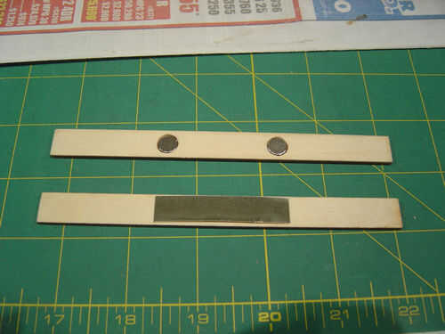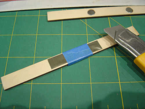 Marca en el metal coger el lado donde están los imanes. Corte un pedazo de metal con sus tijeras para adaptarse a esa zona. Utilice el cincel para tallar por una depresión bastante profunda para el metal para sentarse en él y quedar al ras con el resto de la pieza. Use un par de clavos de alambre para sostener el metal en su lugar, flexión sobre el clavo extra en la parte posterior de la pieza. Esto evitará que tirando y fijar a los imanes.