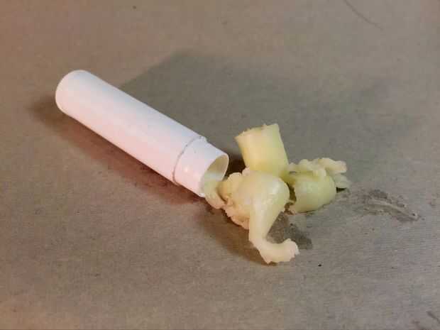 -El primer paso, una vez que tengas tus materiales, es raspar hacia fuera el Chapstick sobra. Usé el mango de mi pequeño pincel.