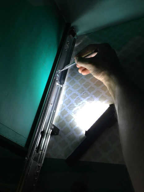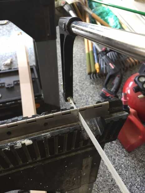 - La última cosa que necesitaba hacer era cortada por una bisagra de piano a tamaño. Usando una sierra para metales, corte dos bisagras a 17" de largo. Me daría una pequeña sala de maniobra a ambos lados de la bisagra cuando llegó la hora de montar.