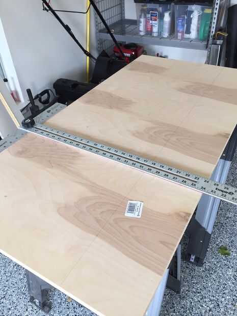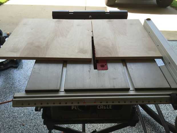 - A partir de la superficie de la tabla, dibujó las líneas en la madera contrachapada de 3/4" a seguir en la Sierra de mesa. Que libre los cortes para las tres partes que componen la superficie ya mi sierra de mesa no es el más grande...