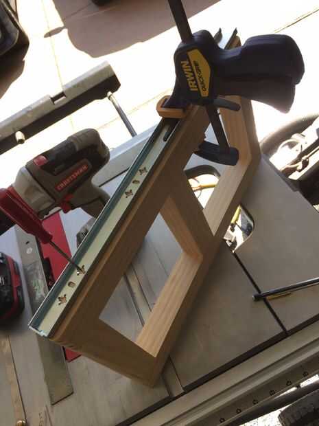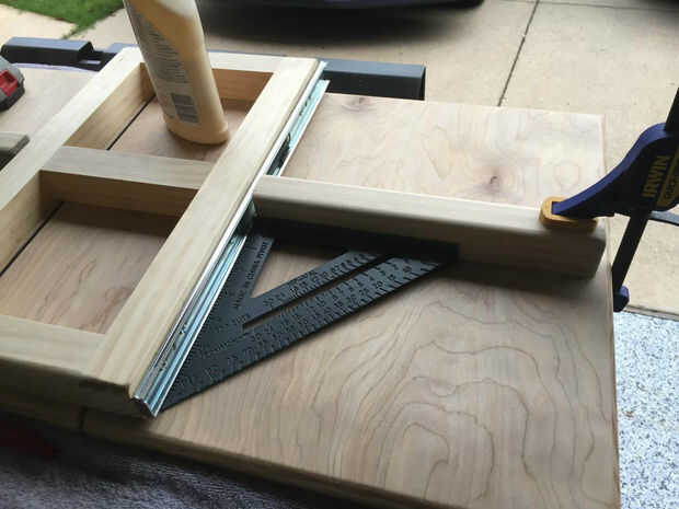 - Forma oficial tomado de la tabla en este momento y ahora solo me falta añadir las piezas laterales. No tengo una foto de esta parte de la construcción - no odio - pero todo lo hice fue ejecutar una tira de madera encolada la cada pieza lateral, fijarlo con la abrazadera y clavo en su lugar con una clavadora de calibre 18.