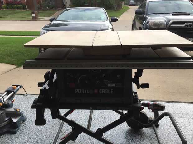 En este punto hizo un poco nervioso (increíblemente). La tabla construida y se ve buena de plegar y desplegar en la cima de la Sierra de mesa, pero no sabía si iba a montar en el gabinete. Así que la llevó dentro y deslícelo en su lugar con un poco de persuasión física. Por suerte, acabó deslizando y despliegue como se suponía demasiado. Voy a decir que era mucho más estricta que yo esperaba, porque el espacio entre la parte superior de la tabla de plegado y el gabinete estante por encima de él es sólo aproximadamente 1/16 de pulgada. Prefiero ser afortunado que bueno cualquier día.