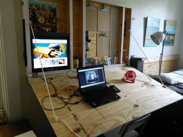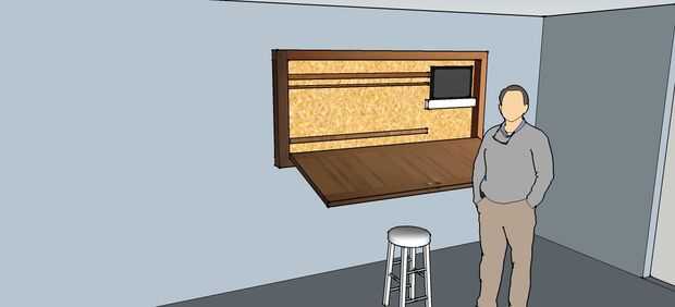 Durante años has soñado con tener una mesa de redacción en el apartamento pero no estaba dispuesto a sacrificar espacio. Este proyecto permite para una mesa de redacción ser instalado en cualquier lugar - incluso sobre un escritorio existente. El procesamiento de Sketchup es de un piso viejo y no coincide con la instalación pero muestra la intención.