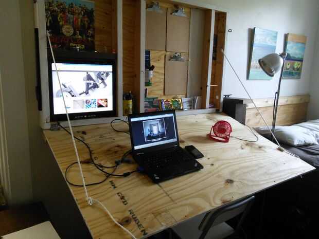Cuerda se monta en el interior del bastidor y se conecta a calas en la propia mesa. Cadena es preferible evitar cualquier flex pero la cuerda era a mano.