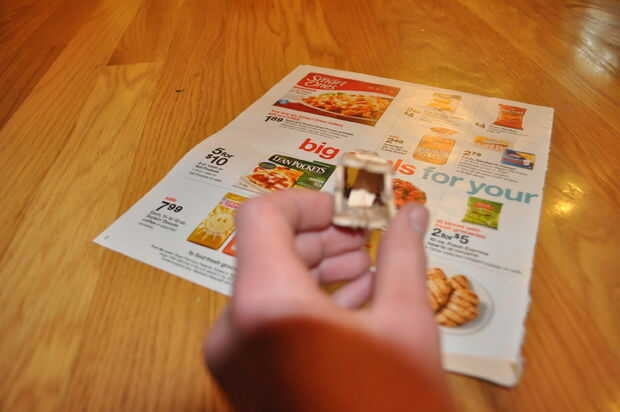 4. usando una sierra de cinta, corte 3 trozos de media pulgada de la articulación flexible (debe quedar en el agujero en sus cajas de palo de paleta).