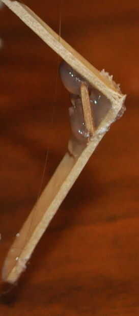9. este paso puede conseguir complicado, así que puede usar un poco de pegamento caliente o alguna cinta adhesiva para colocar la garra. Utilizando uno de estos métodos de posicionamiento conectar uno de sus garras de palillo de paleta en la parte inferior de la bisagra de paletas para que no se caiga cuando al revés pero se pueden mover ligeramente (repetirlo con las otras tres).