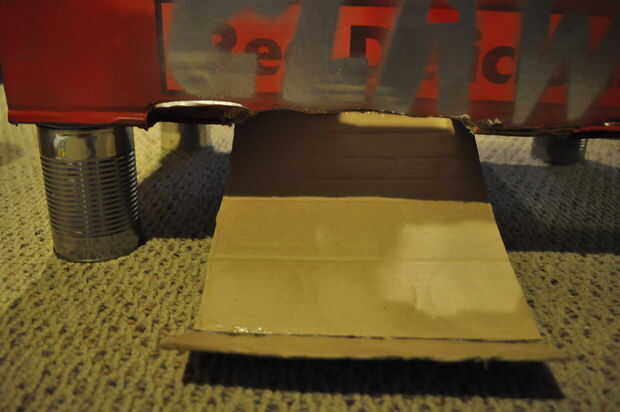 4. Pegue una lata de 4'' de altura a cada esquina de la caja como las piernas.