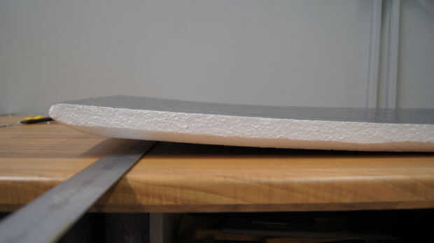 Cubrir toda la hoja de la espuma con cinta aislante, esto dará un bote de aire de larga duración y hacen prácticamente indestructible. Asegúrese de frotar la cinta firmemente sobre la espuma.