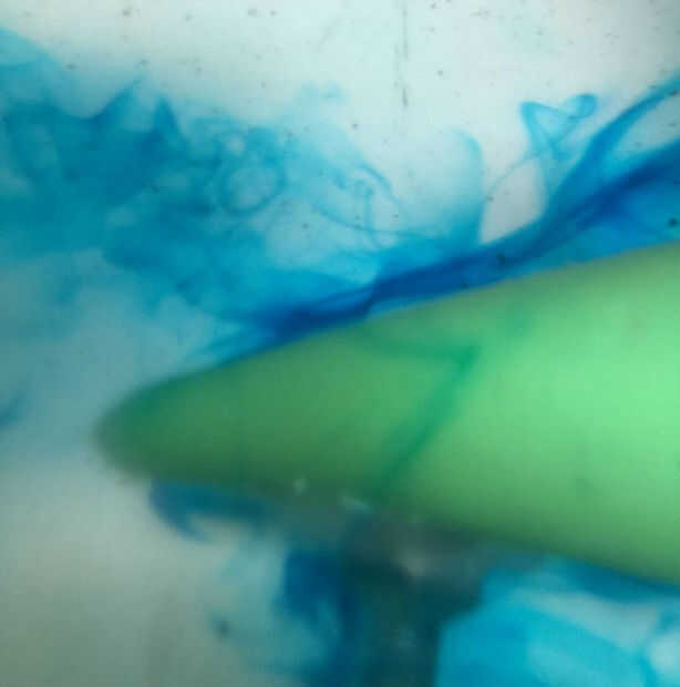 un túnel de agua es como un túnel de viento, le muestra cómo aerodinámico es un objeto. por ejemplo el cono pongo en es aerodinámico en la parte delantera pero en la parte posterior usted puede ver que el tinte se arremolinan y que nos diría que tiene arrastre succión así si se trataba de un coche menos consumo de combustible