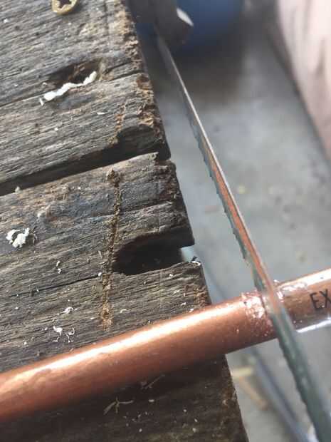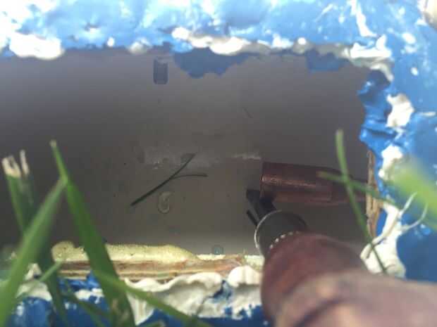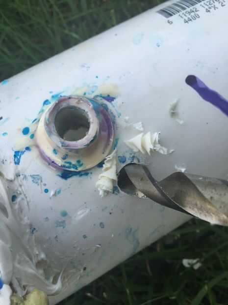usando una broca que es aproximadamente el mismo tamaño que la punta de la antorcha perfore un orificio de aproximadamente una pulgada lejos de la ventana