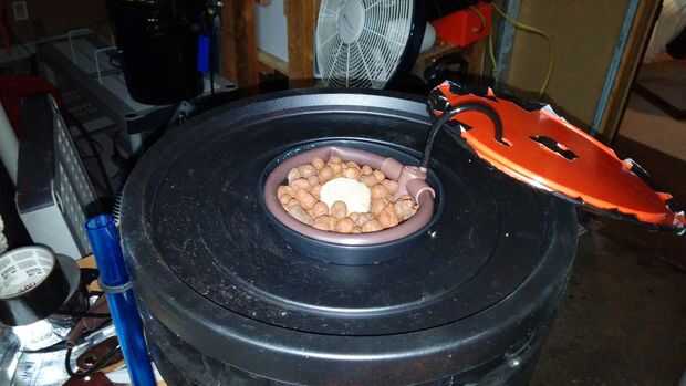 - Perfore otro agujero de línea tamaño de aire en la tapa del cubo, una pulgada o tan de su pote neto. Usted a ruta su línea de aire anillo de goteo desde el exterior, en el depósito de entonces para arriba a través de este agujero para finalmente colocar el anillo de goteo. Puedes ver aerolínea en mi foto.