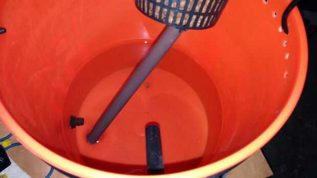 - A continuación, medimos la longitud de la línea principal de aire. Coge la cinta métrica flexible. Mida desde la parte inferior de la canastilla, hasta sobre el labio y el exterior. Anote esa medida. Esta es la longitud mínima que usted debe hacer su línea principal de aire. Deben dar aproximadamente 6 pulgadas de holgura suponiendo que usas la piedra del aire de mi lista de piezas y que los agujeros de la línea de aire son un par de pulgadas de la parte superior del cubo. Tenga en cuenta, que necesita suficiente línea de aire para llegar a donde usted planea poner su bomba de aire. Como dije, me gusta mantener mi bomba de aire justo al lado de la cubeta para que esta medición funciona para mí. Si es necesario, sienta libre de añadir longitud a esto.