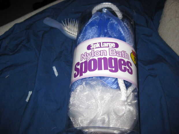 2. una malla de nylon. Usted puede encontrar como materiales de embalaje. Aquí utilizo una esponja de ducha de malla de nylon barato que recibí de Walgreens. 3 por $2.