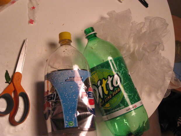 1. una botella plástica reciclada, uno con un aro de plástico alrededor del cuello como la mayoría de botellas de refresco.