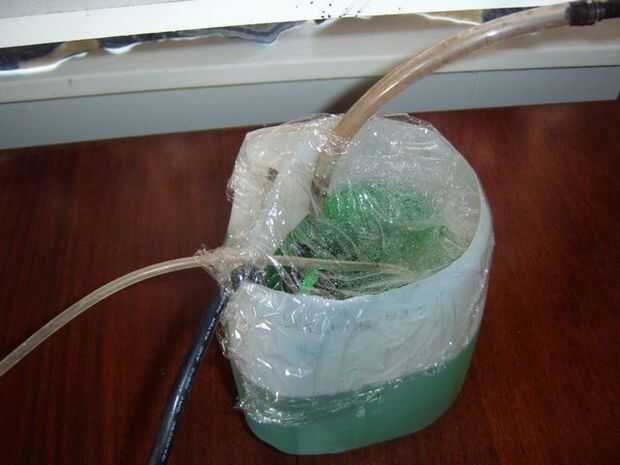 Se trata de un sistema cerrado. Lo que quiero decir es que el depósito totalmente vacío en los envases y sifón detrás. En la primera carrera añadir agua al depósito como los envases de llenado para subir el nivel. Como se evapora la solución, hay que añadir agua para mantener ese nivel.