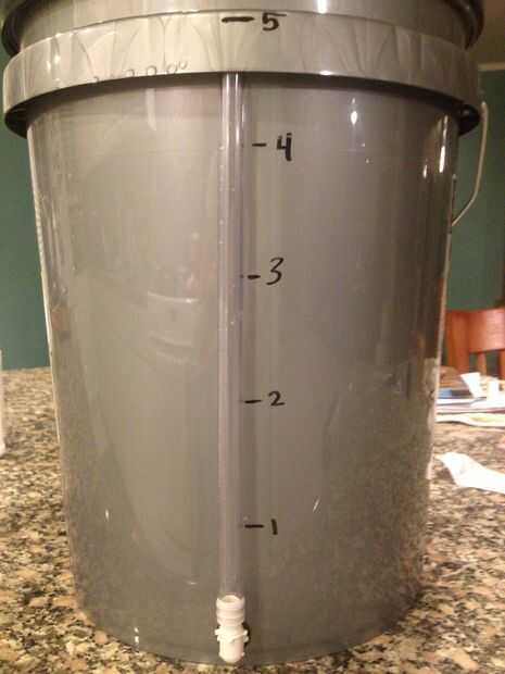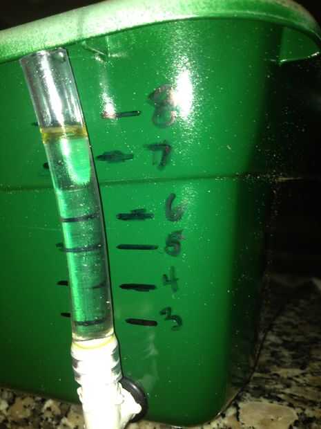 Si no tienes el tubo control, llenar el recipiente hasta cuatro galones y marca el interior con un marcador permanente y luego relleno hasta los ocho galones y hacer lo mismo.