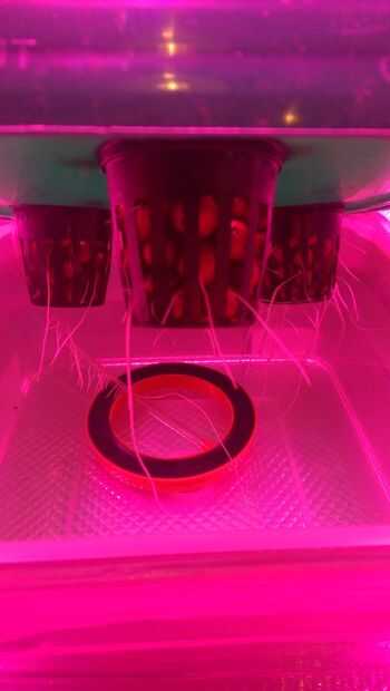 Como se puede ver en las imágenes, la unidad trabajó maravillosamente. Como fui creciendo tomates, chiles y pimientos usé 3x50mm neto ollas y cubos de lana de roca que fueron remojados y tratados antes de la siembra. Todo comenzaron a crecer muy rápido y tenían hermosas hojas verdes y raíces sanas también.