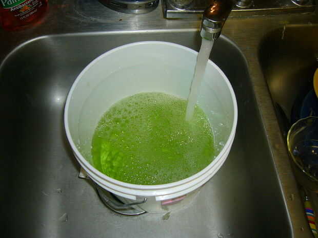 Cuando llena al nivel correcto, mi envase llevará a cabo alrededor de 15 galones de agua. Por lo requiere 15 cucharaditas de concentrado. Conversión a CCs (la graduación de mi jeringa), que es de 73cc. Iré añadiendo 80cc de solución concentrada.