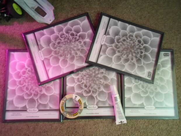 - Por lo menos 5 marcos de Dollar Tree (la cantidad dependerá de qué tan grande es su diseño), o una cantidad equivalente de vidrio. Elegí estos marcos porque son baratos, pero son muy delgados y se rompen fácilmente.