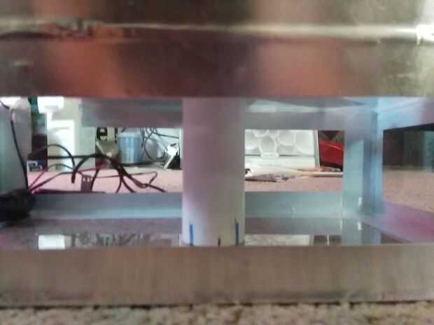 Mientras que usted puede construir lo mismo que hice, no lo recomiendo. Tenía planes diferentes y cambian a medio camino a través. Para hacer el sifón simplemente tomar su pedazo de tubo, ponga la tapa en un extremo y corte unas muescas en el otro extremo. Las muescas no deberían salir más de 1/4 pulgada a la tubería. Tomar el tubo y empuje a través del orificio de la crece cerca de 1/2 de pulgada de la cama y encolarla. El tubo debe extenderse hacia abajo a la parte inferior de la cama crece para crear suficiente succión. La parte superior del tubo es tan alta como el agua irá, así que corte el tubo donde desea que el agua drene. Mi tubo es suficientemente largo para permitir que la cama crece llenar con 2,5 pulgadas de agua. Después de que el tubo se fija simplemente aplique una fina capa de silicona en la parte inferior de la tubería y situado en la parte superior del tubo para que el tubo está dentro de la TI.