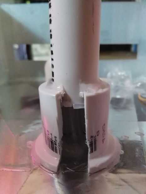 Mientras el tubo se puede montar el sifón de la campana. Este sifón consiste en: un pedazo más grande de la pipa que tiene una tapa en un extremo y las muescas cortadas en el otro, un pedazo pequeño de tubo conectado a un acoplador y un tubo interior de la tubería más pequeña.