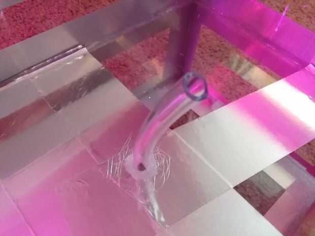 Después de tener el tubo de corte, pegamento un extremo en una de las esquinas delanteras de la cama crece dejando unos 3mm de espacio entre el extremo de la tubería y la parte inferior de la cama de crecimiento, esto permite que la línea de alimentación a sifón el agua hacia abajo una vez que se ha apagado la bomba.