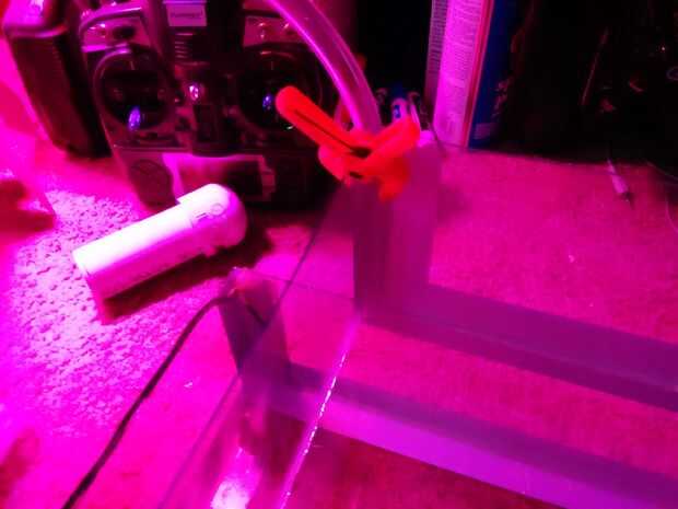 En la salida de la bomba es de 1/4 en tubos de PVC. Cortar un trozo de tubo de alrededor de 10 pulgadas de largos, o el tiempo suficiente para el funcionamiento de la bomba y sobre la pared del crecimiento de la cama y abajo en la cama de crecimiento. Salida de mis bombas es apenas más grande que el interior de la tubería por lo que empujó simplemente para un agradable fricción ajuste.