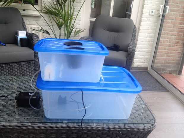 Nuestro sistema de hidroponía llevará agua desde un depósito (un contenedor) a través de un tubo o manguera de hasta donde se suspenderán las raíces de las plantas. Las raíces a recoger el agua y los alimentos porque el agua y los nutrientes a fluir en la parte inferior del envase que las plantas. El agua y los nutrientes vuelve al depósito y el ciclo se repite. Esto se llama el método NFT. Medios NFT técnica de película nutriente. Es el proceso de un flujo constante de agua y nutrientes por las raíces. El agua normalmente fluye a través de un canal o tubería pero utilizamos un envase rectangular.