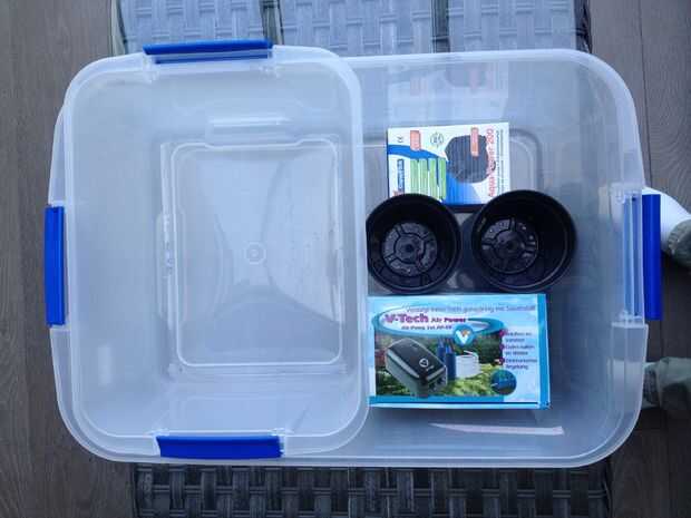 ** Tengo todas mis materias en mi tienda de jardinería local. Tengo la bomba de agua y bomba de aire (las piedras de aireación y la tubería se incluyeron con la bomba) en la sección de peces de acuario.