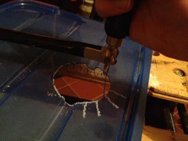 6. Haga un orificio en el pequeño círculo que hiciste. Ahora una sierra y cortar un círculo más pequeño.