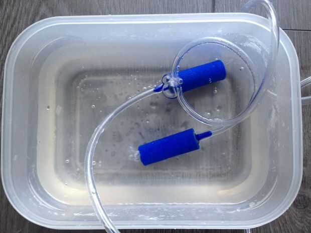 6. Coloque sus piedras de aireación en el agua y asegúrese de que estén totalmente cubiertos por el agua.