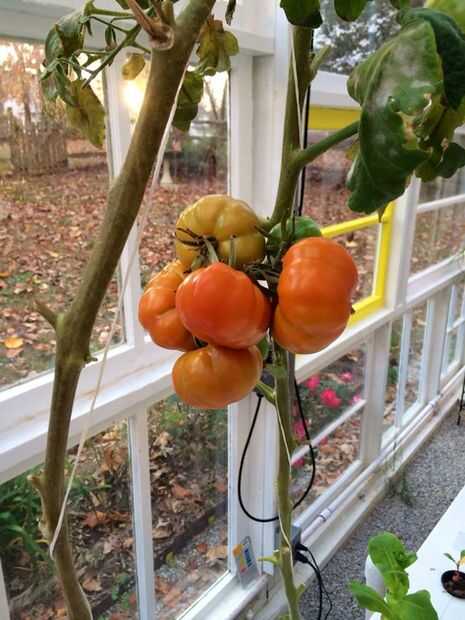 Esto es lo que se trata. Hace meses he estado trabajando este invernadero y finalmente llego a cosechar los beneficios. Podría decir por qué no simplemente ir a la tienda y comprar unos tomates en lugar de pasar todo este tiempo en dinero para un montón de tomates mudos. Y digo "Me gustaría si me gustó el sabor de cartón".  : P Nota las hojas en el suelo, aquí es finales de noviembre.