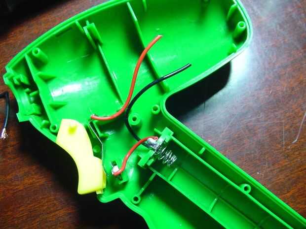 En primer lugar identificar la ficha positiva en el resorte de la batería, que es donde necesita soldar o Conecte un cable de interruptor remoto y positivo de una potencia de la fuente 6-12 voltios DC. El cable negativo de la energía se conectará el cable negro y el lado negativo del motor. El otro cable del interruptor remoto se conectará al lado positivo del motor (se muestra en el paso siguiente).
