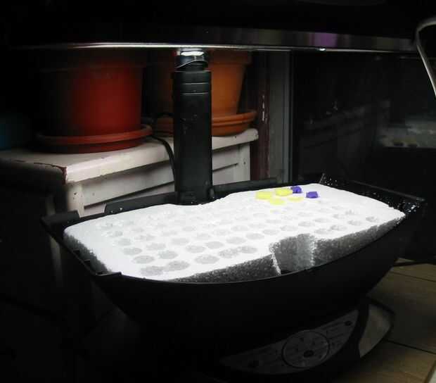 Cultura del agua profunda es el más viejo sistema de jardinería hidropónico y uno de los más simples, una plataforma de plantadores simplemente flota en el embalse de nutrientes mientras que las raíces de las plantas cuelgan en la avanzada solución n