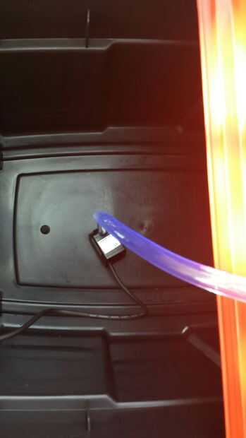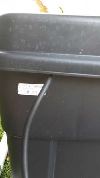 La bomba sumergible debe colocarse dentro del depósito grande y 3 agujeros deben ser perforados en la tapa. 2 agujeros de 12mm hay que taladrar para la salida de la bomba y el otro para el desbordamiento en el depósito (ver imagen 2). El tercer agujero debe ser perforado para que el cable de alimentación de bombas a la salida del tanque. Coloqué una hendidura en el lado del tanque (ver imagen 3 y 4).