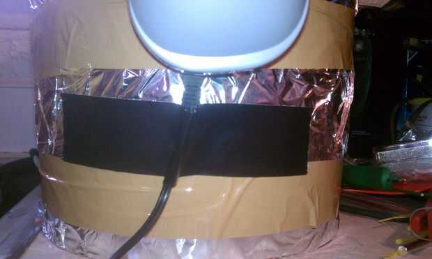 Coloque un tercer trozo de cinta en la parte inferior para sostener la parte inferior de la bomba al lado del cubo. Tuve suerte y el cable por ahí vino así que había pegado justo al lado.