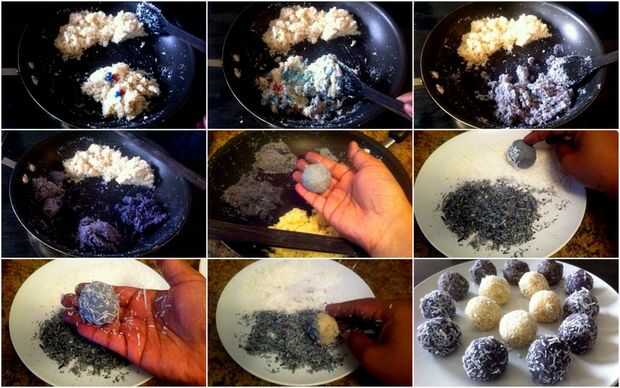 Para hacer estos laddoos coco irresistible requeriría:coco recién rallado 250 gramos,2 cucharadas de ghee,aprox. 150 gramos de azúcar,2 cucharadas de crema fresca,poder de cardamomo 1 cucharada,color de alimento amarillo (opcional).Paso 1: El procedi